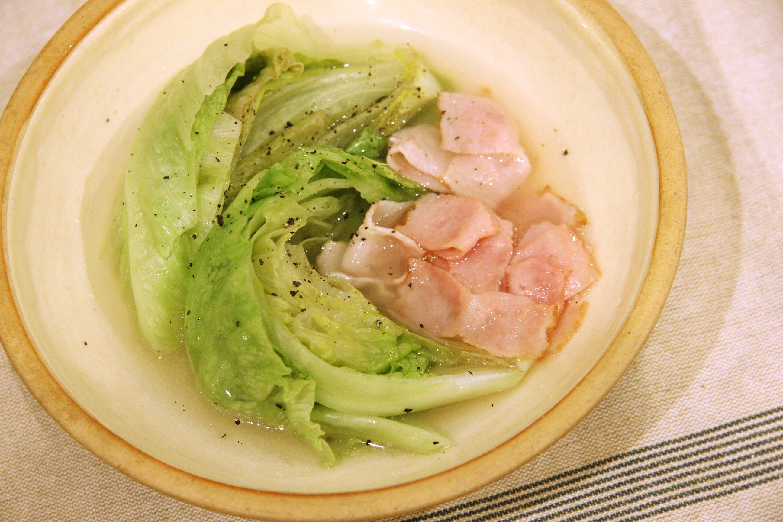 旬のレタスをベーコンと煮込むだけ。シンプルで旨みたっぷりの一皿です。