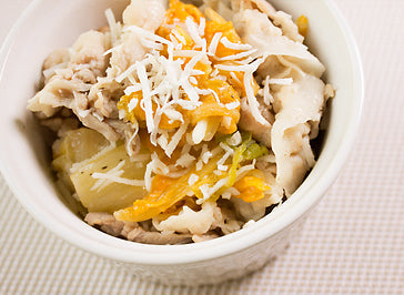 - プレミアムココナッツオイルで少し色がつくまで豚バラ肉を炒める。