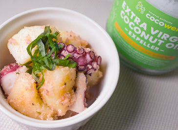 明太子の旨みとじゃがいものほくほく感。ココナッツオイルで風味豊かに仕上げました。