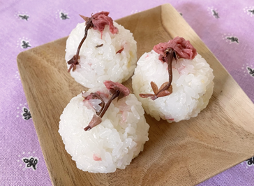 - 桜の花の塩漬けはさっと水にくぐらせて塩抜きし、半分は飾り用にそのまま。残り半分は刻んでおきます。