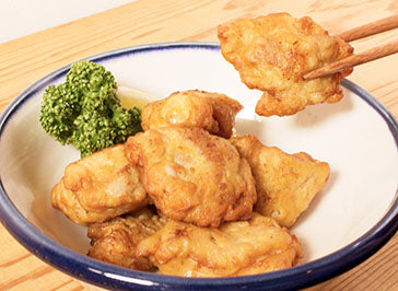 - 約180℃のオイルで火が通るまで揚げる竹串で刺し透明な汁が出ればOK