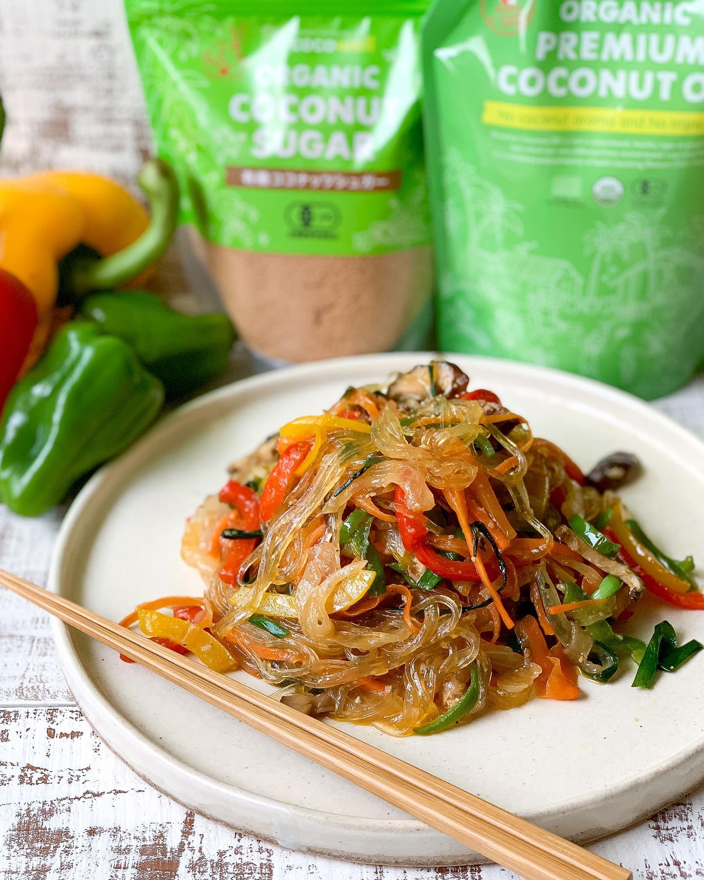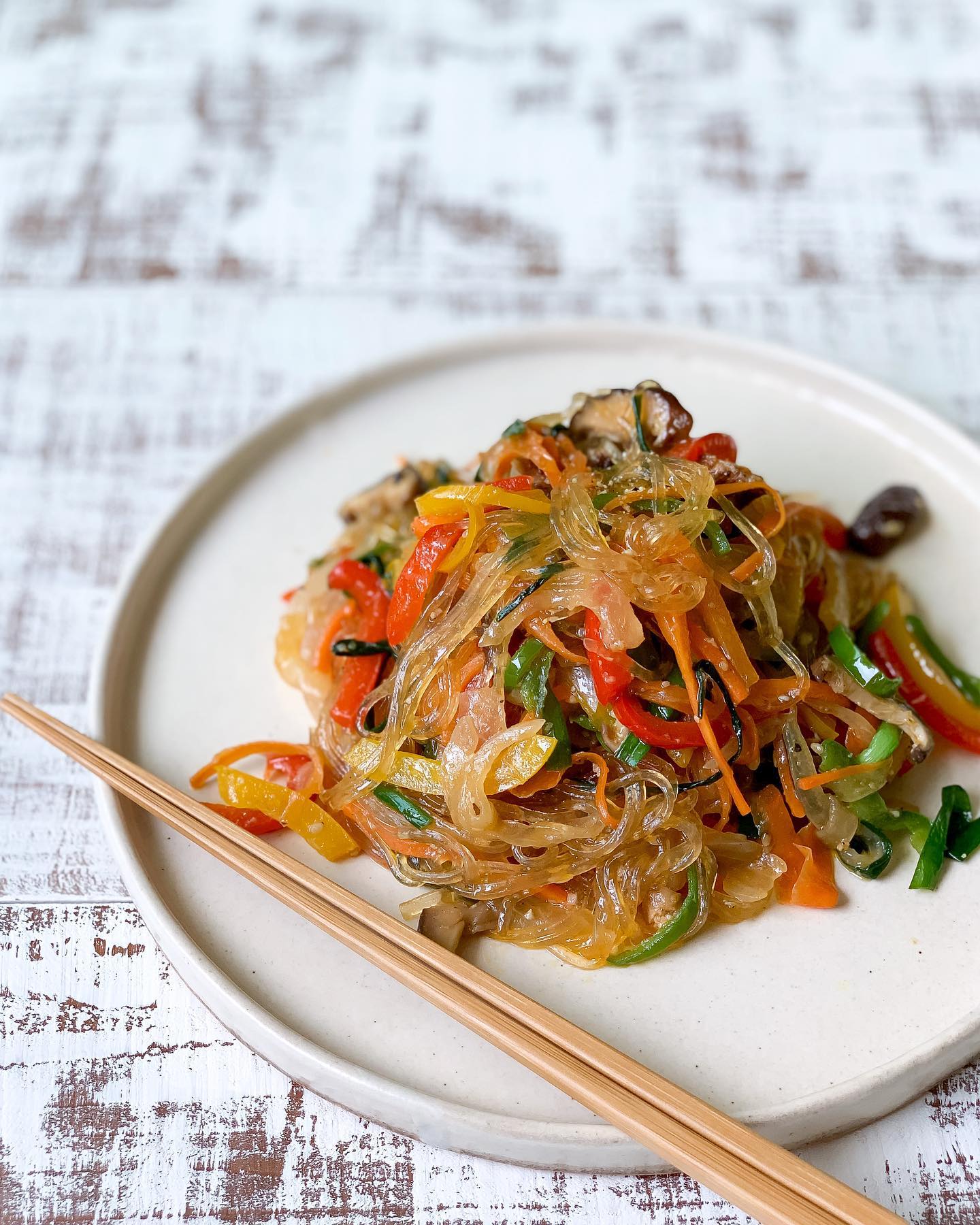 彩り野菜をたっぷり使ったヴィーガンチャプチェ。