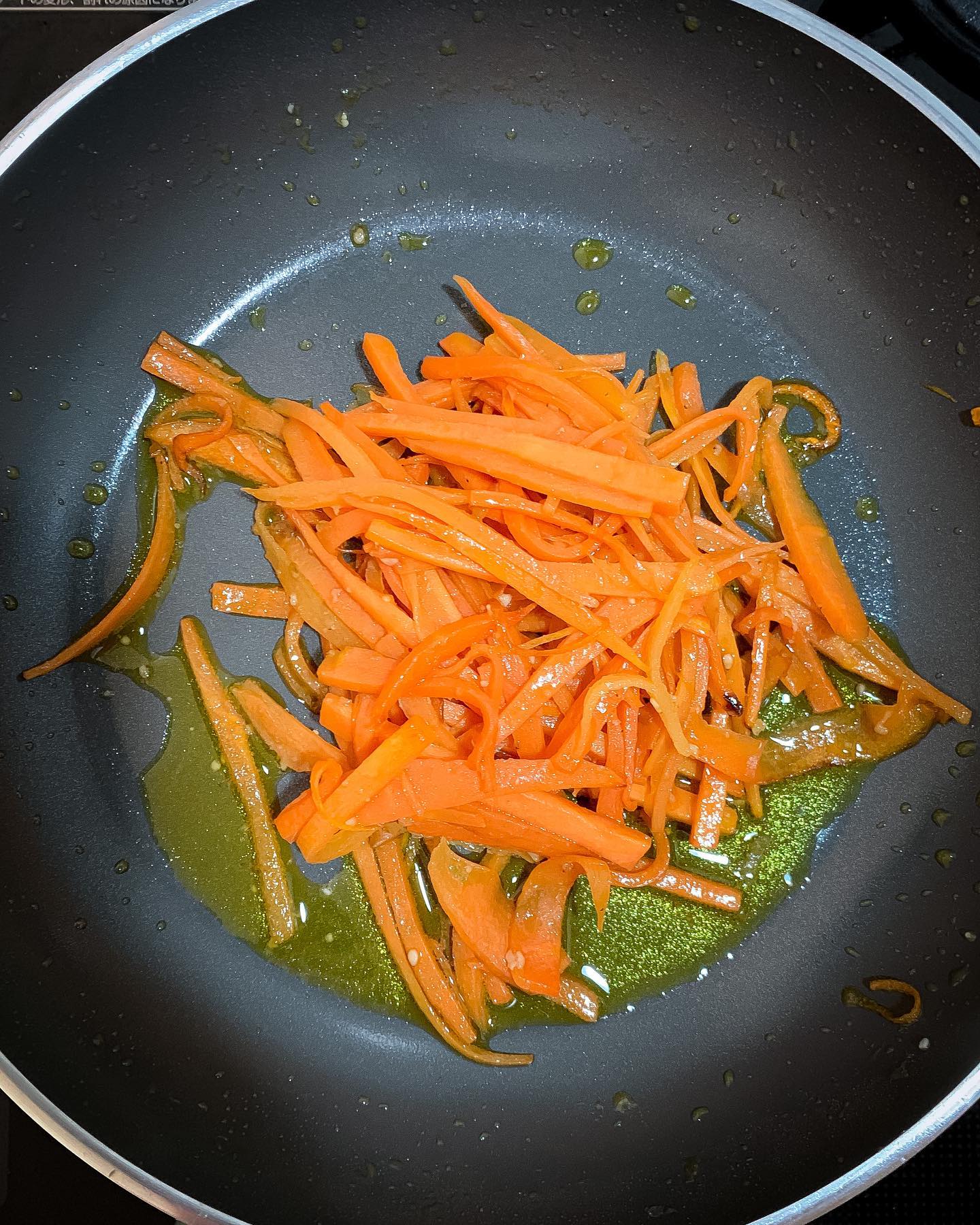 - 厚手鍋またはフライパンにプレミアムココナッツオイルを熱し、④のにんじんを炒める。