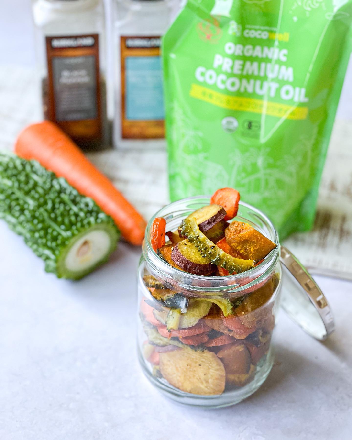 ココナッツオイルで仕上げる「揚げない野菜チップス」は、油っこくなく軽やかな食感が魅力です。