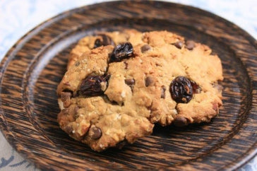 - ココナッツファイバー・チョコチップ・オートミール・刻んだアーモンド・湯通しして水気を飛ばしたレーズンを混ぜる