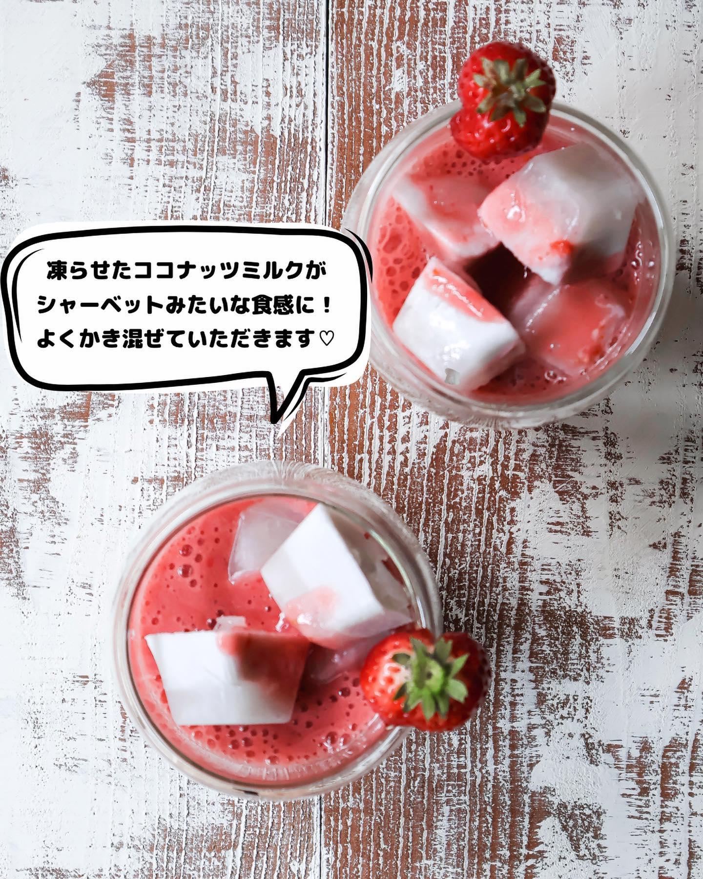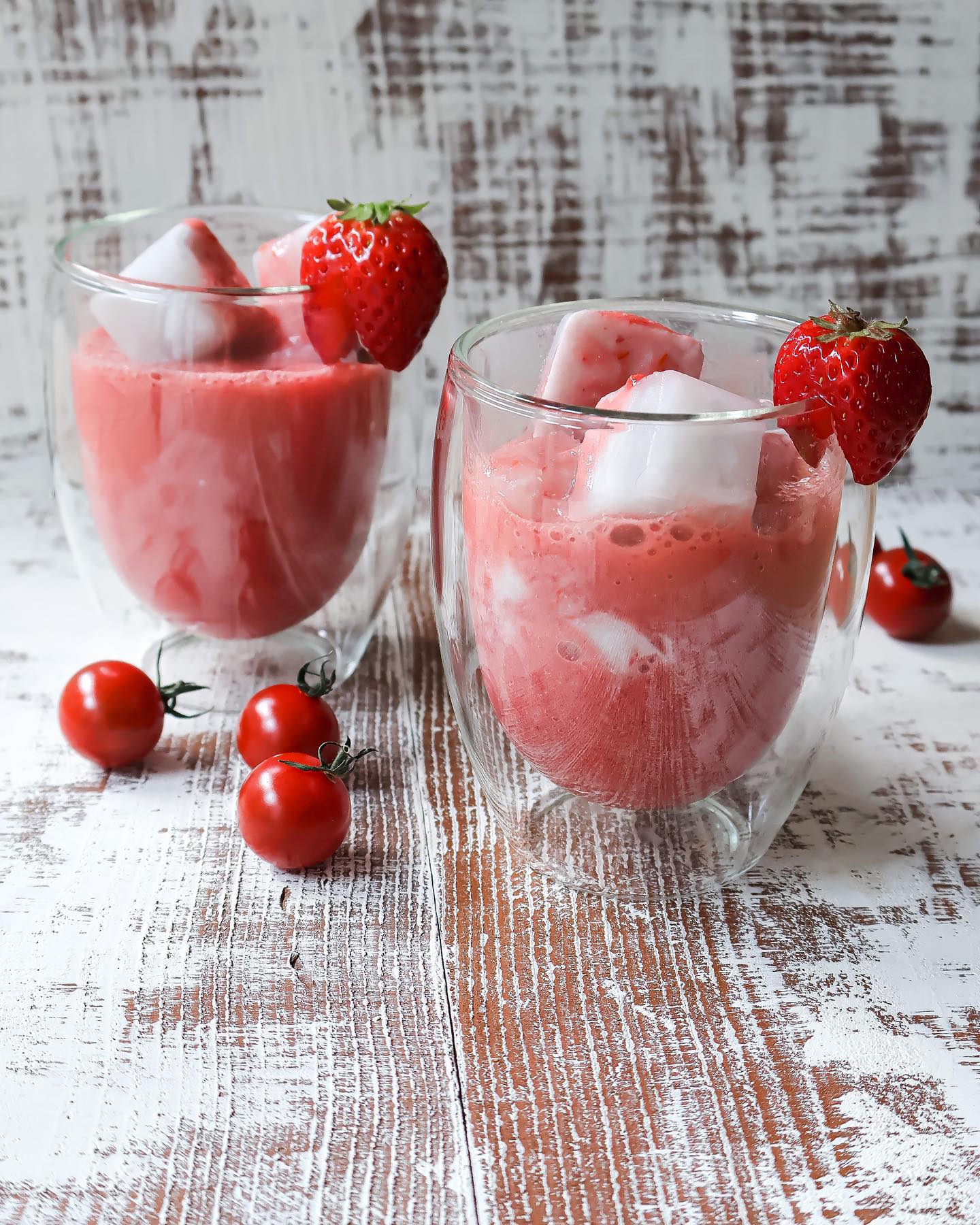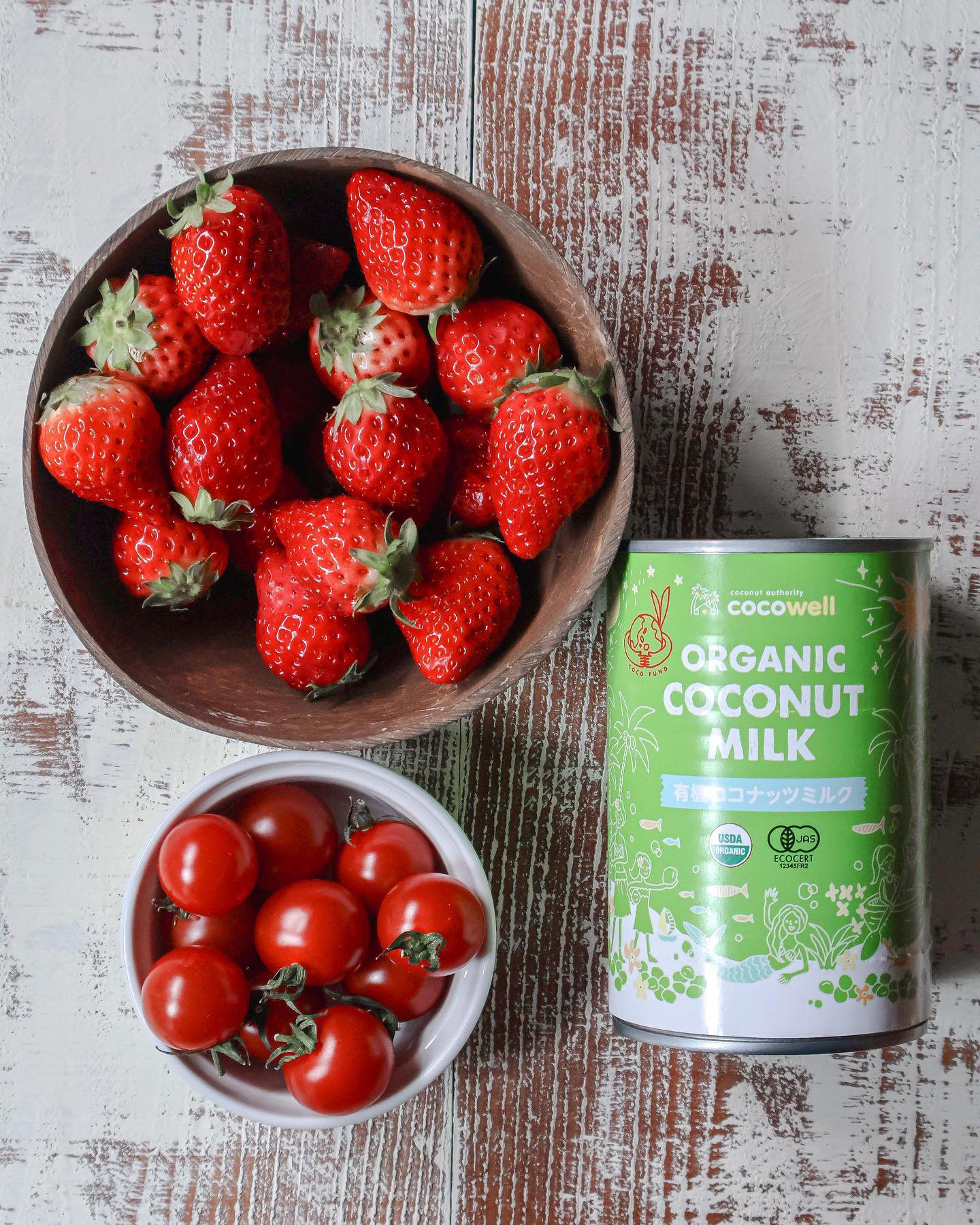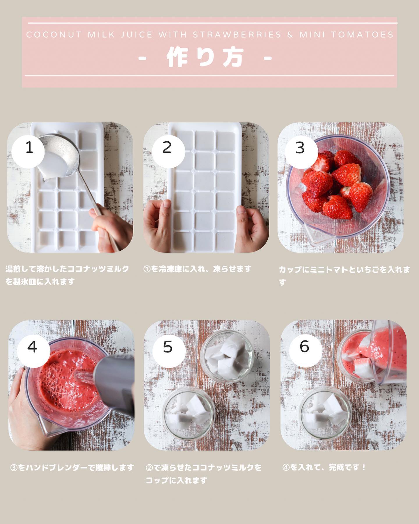 旬のいちごとミニトマトを使った、見た目も可愛い濃厚ココナッツミルクジュース🍓🥥