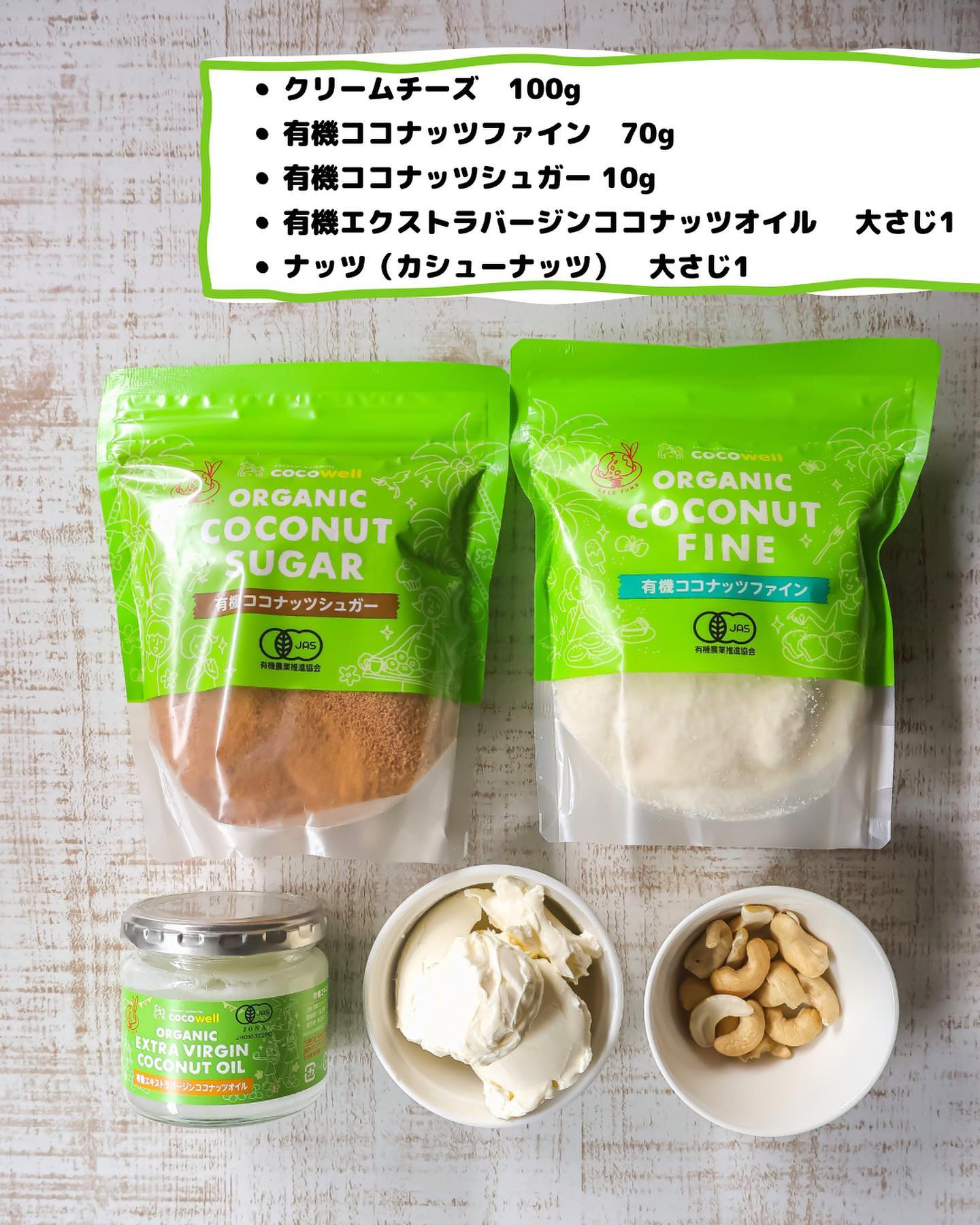 クリームチーズの濃厚なコクとココナッツの香ばしさ、ナッツの食感が楽しい、からだにやさしいスイーツです。