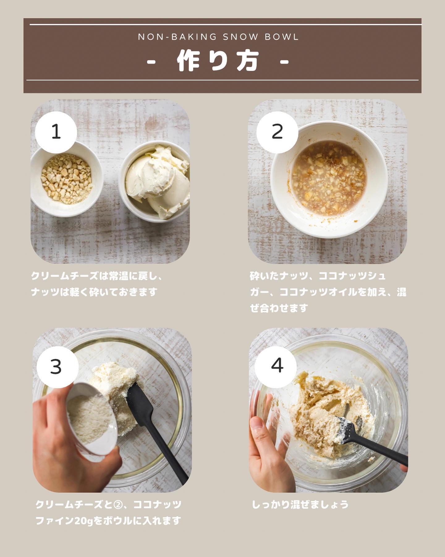 - クリームチーズと②、ココナッツファイン20gをボウルに入れます