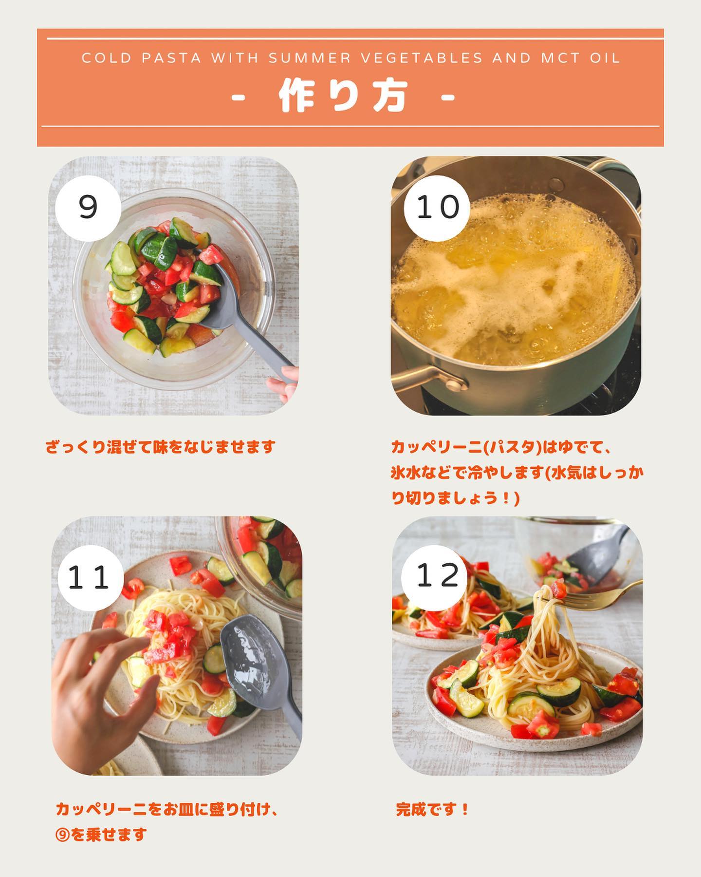 夏にぴったり!MCTオイルで作る冷製パスタ🍅🥒🍝