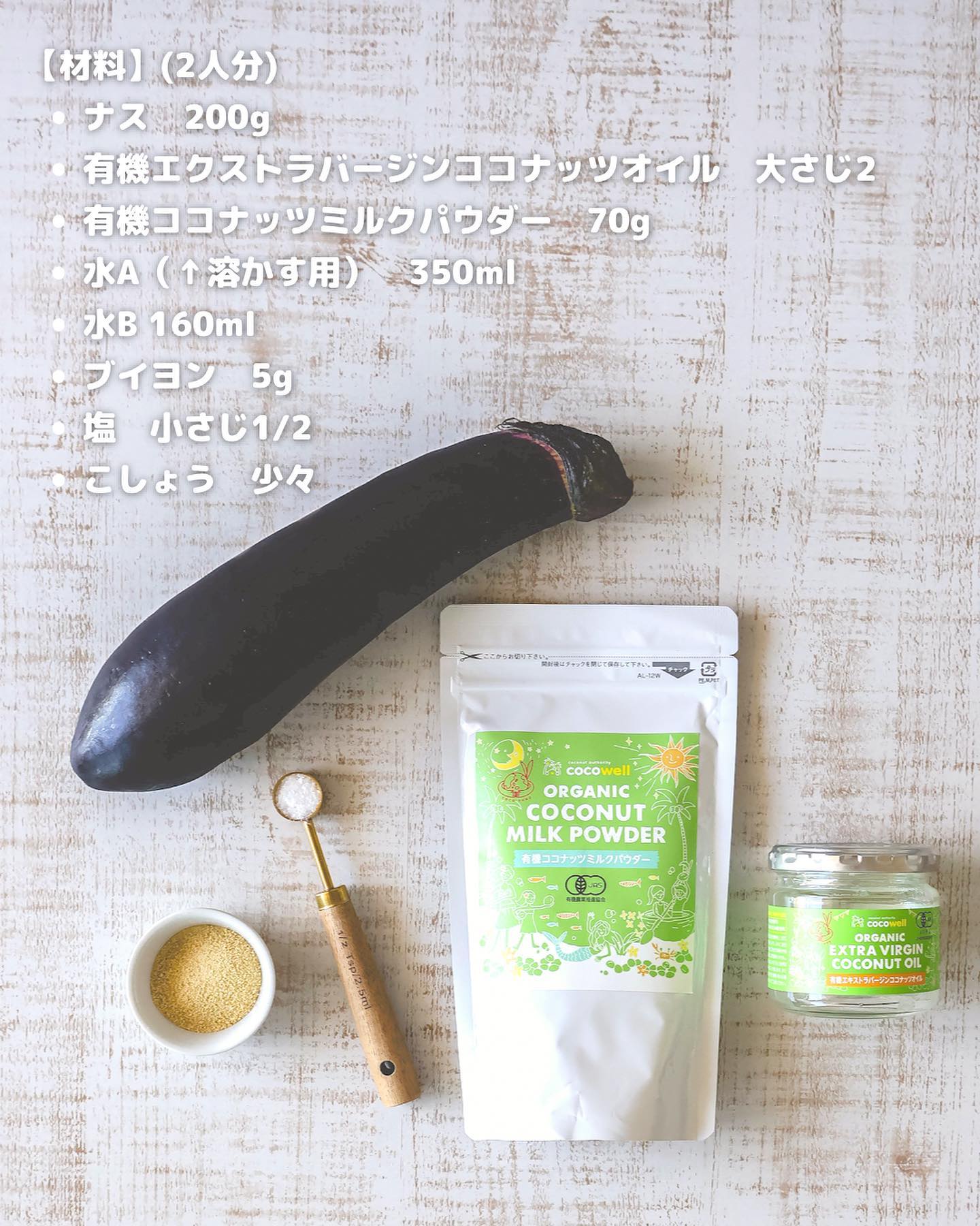 ・ココナッツオイルで炒めることで、ナスにコクと甘い香りが加わります。