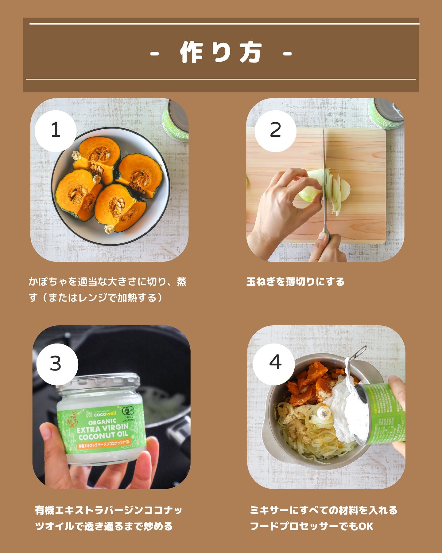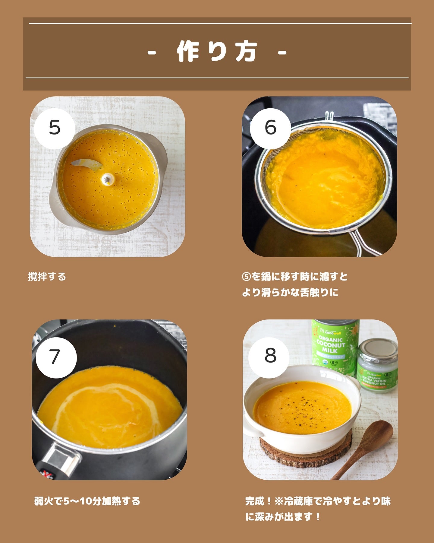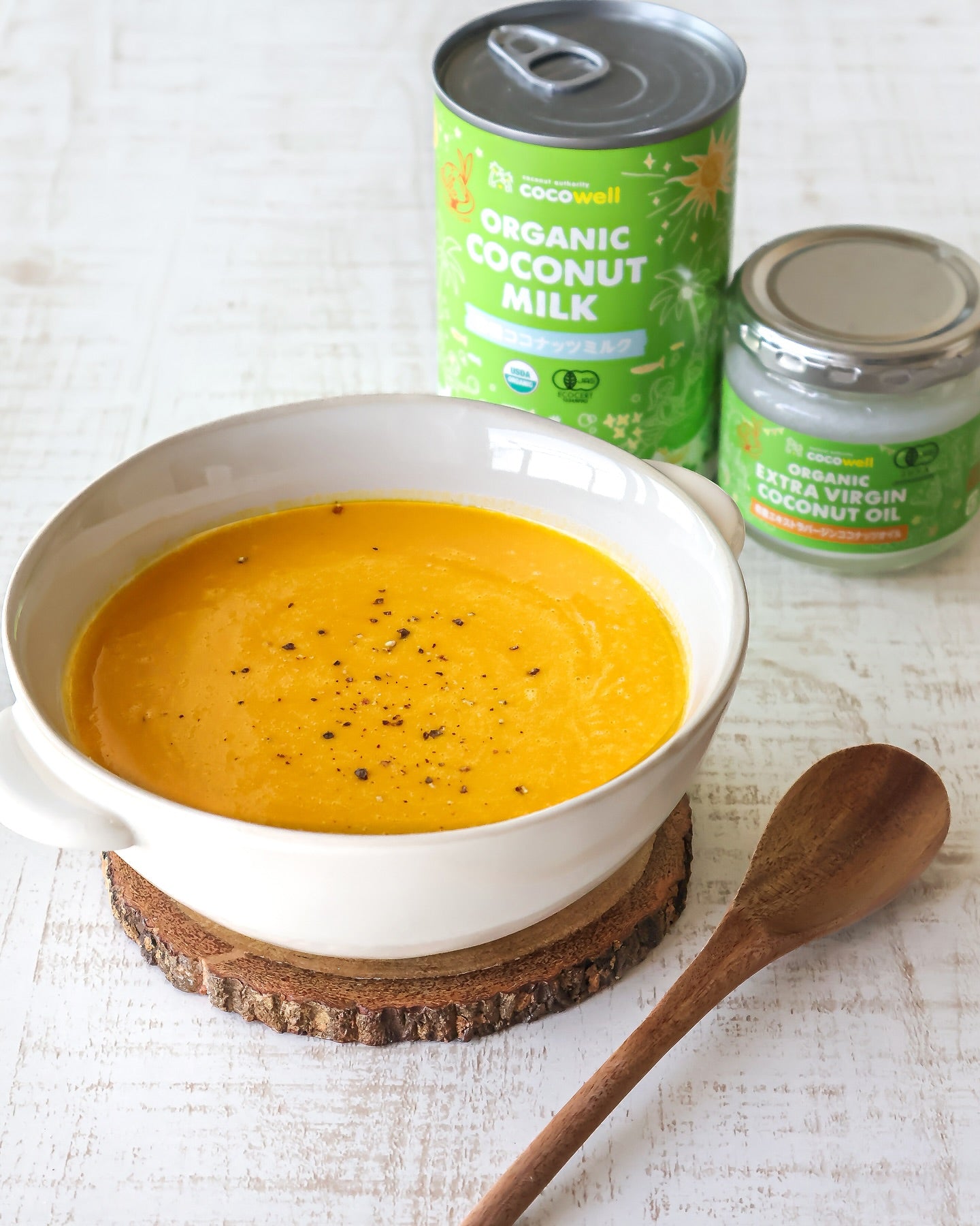 ココナッツミルク缶を丸ごと1本使うことで、かぼちゃの自然な甘みが引き立ち、クリーミーでコク深い味わいに仕上がります。