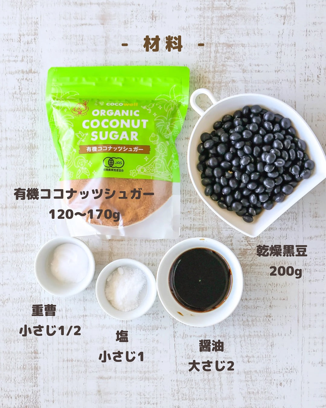 お正月のおせち料理に欠かせない黒豆。ココナッツシュガーで作ると、やさしい甘さとすっきりとした後味が楽しめます。