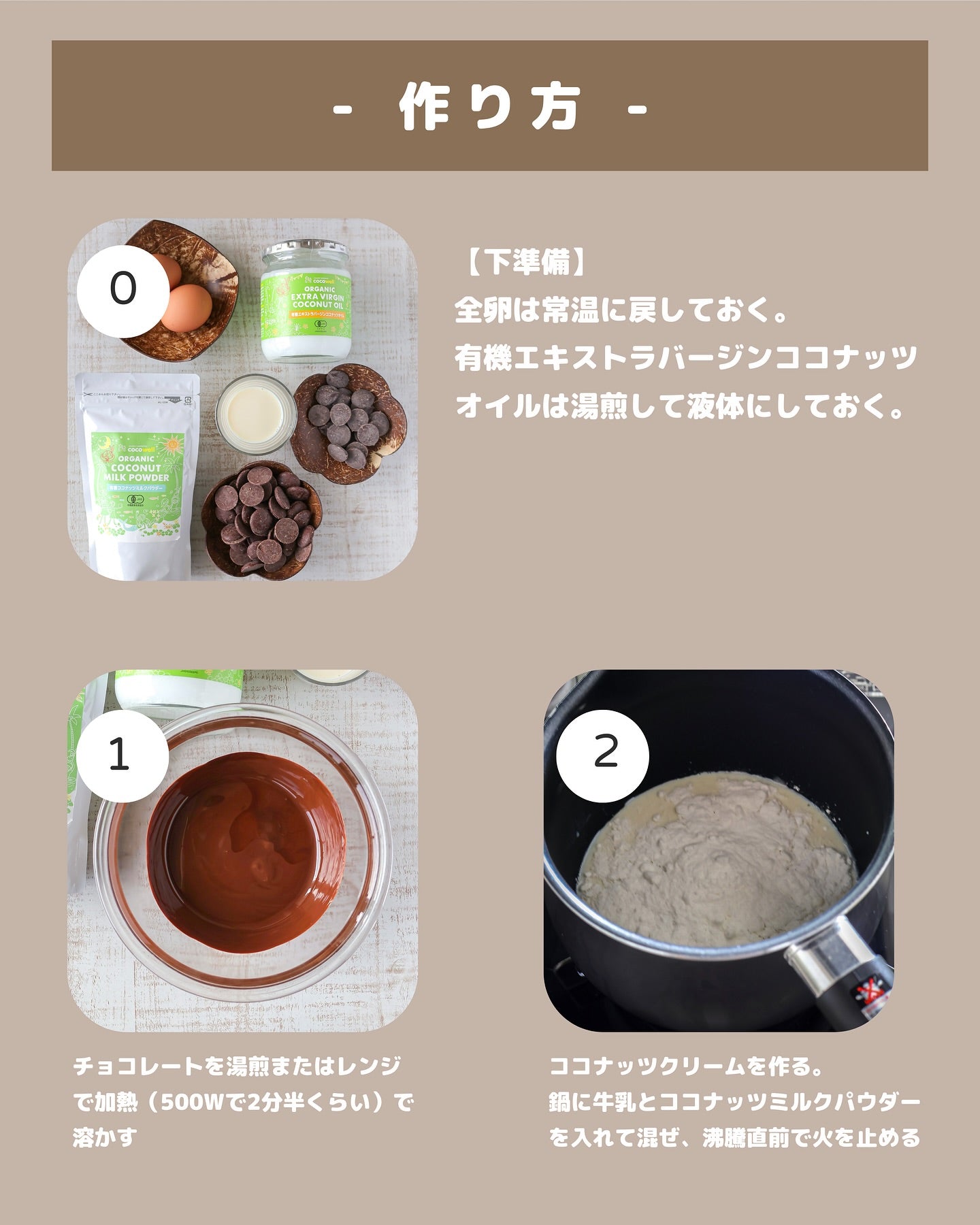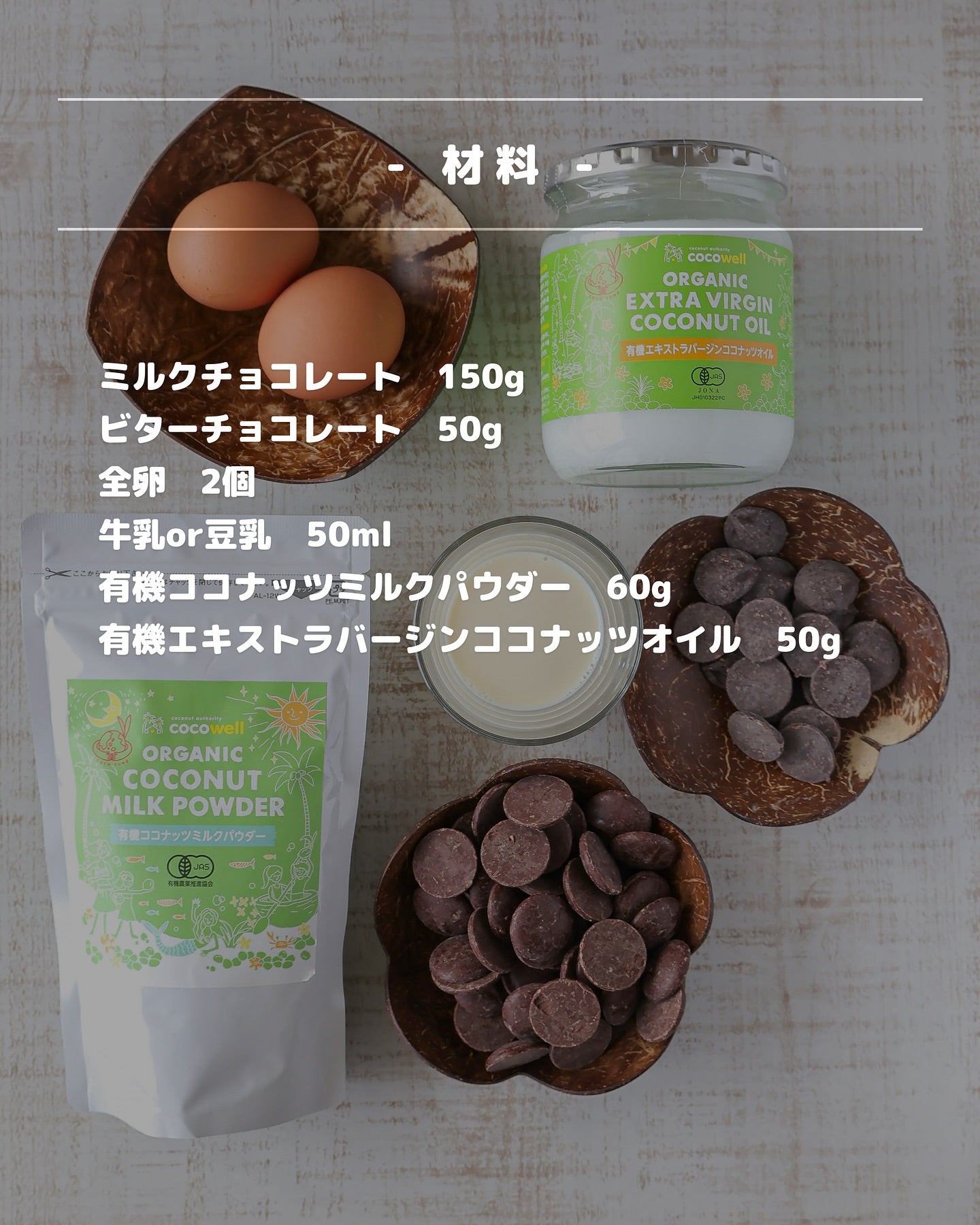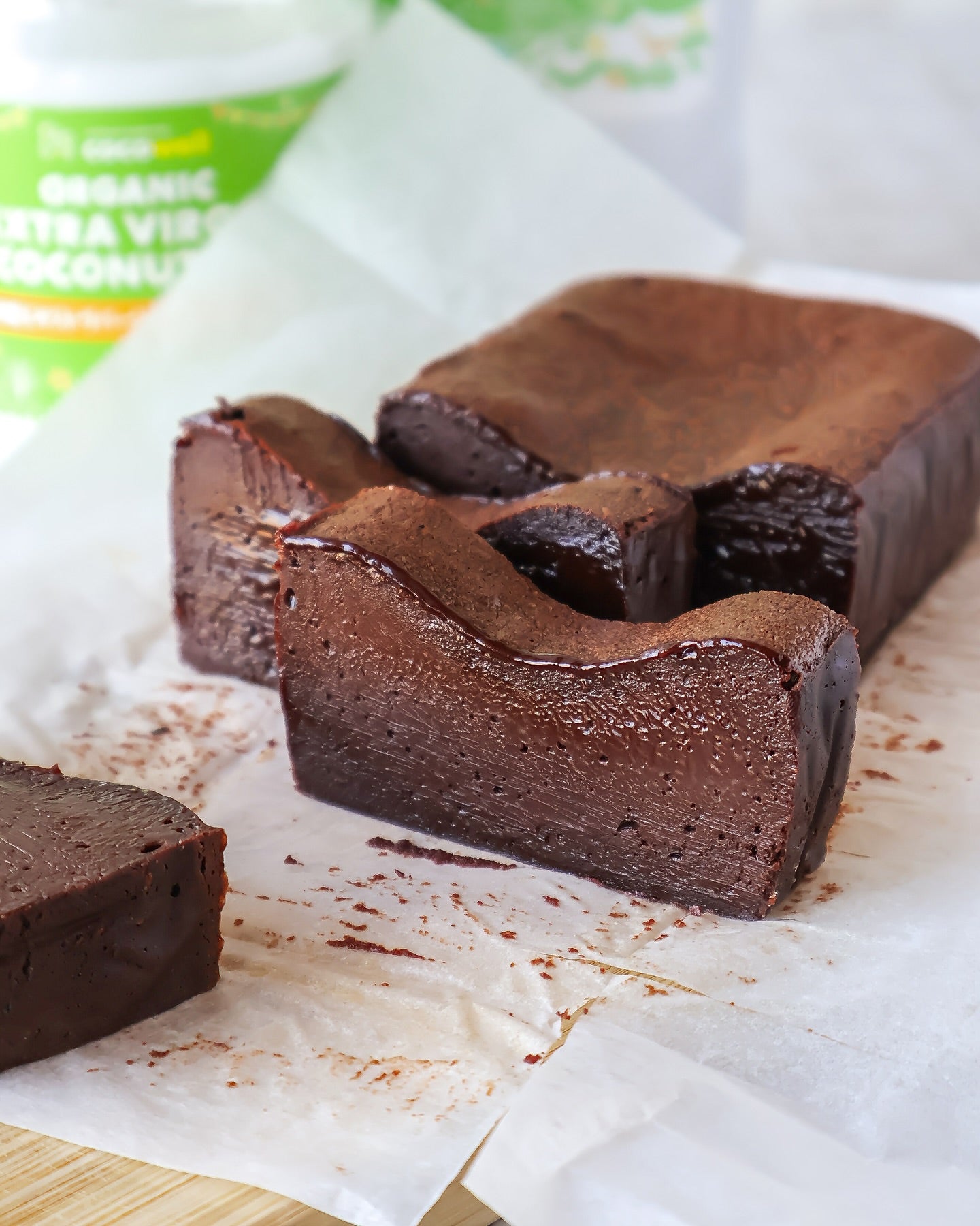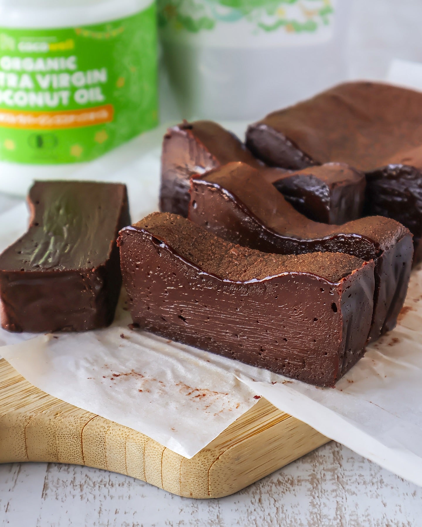 ココナッツミルクパウダーとエキストラバージンココナッツオイルで作る、濃厚ショコラテリーヌのレシピです。