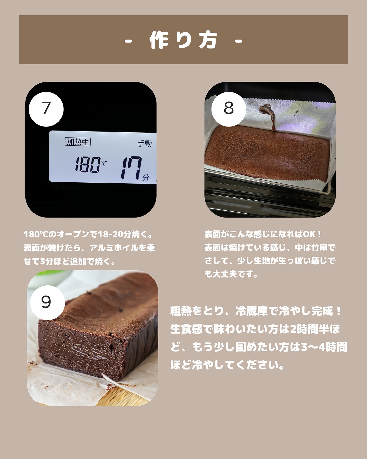 混ぜて焼くだけの簡単レシピなので、初心者の方でも失敗しにくいのが魅力です。チョコ好きにぜひ味わってほしい一品です。