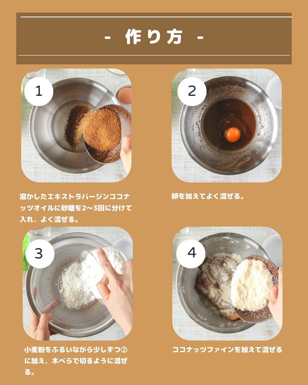 ・焼き色を抑えたい場合は、ココナッツシュガーを一部きび砂糖や洗糖に置き換えるのがおすすめ。