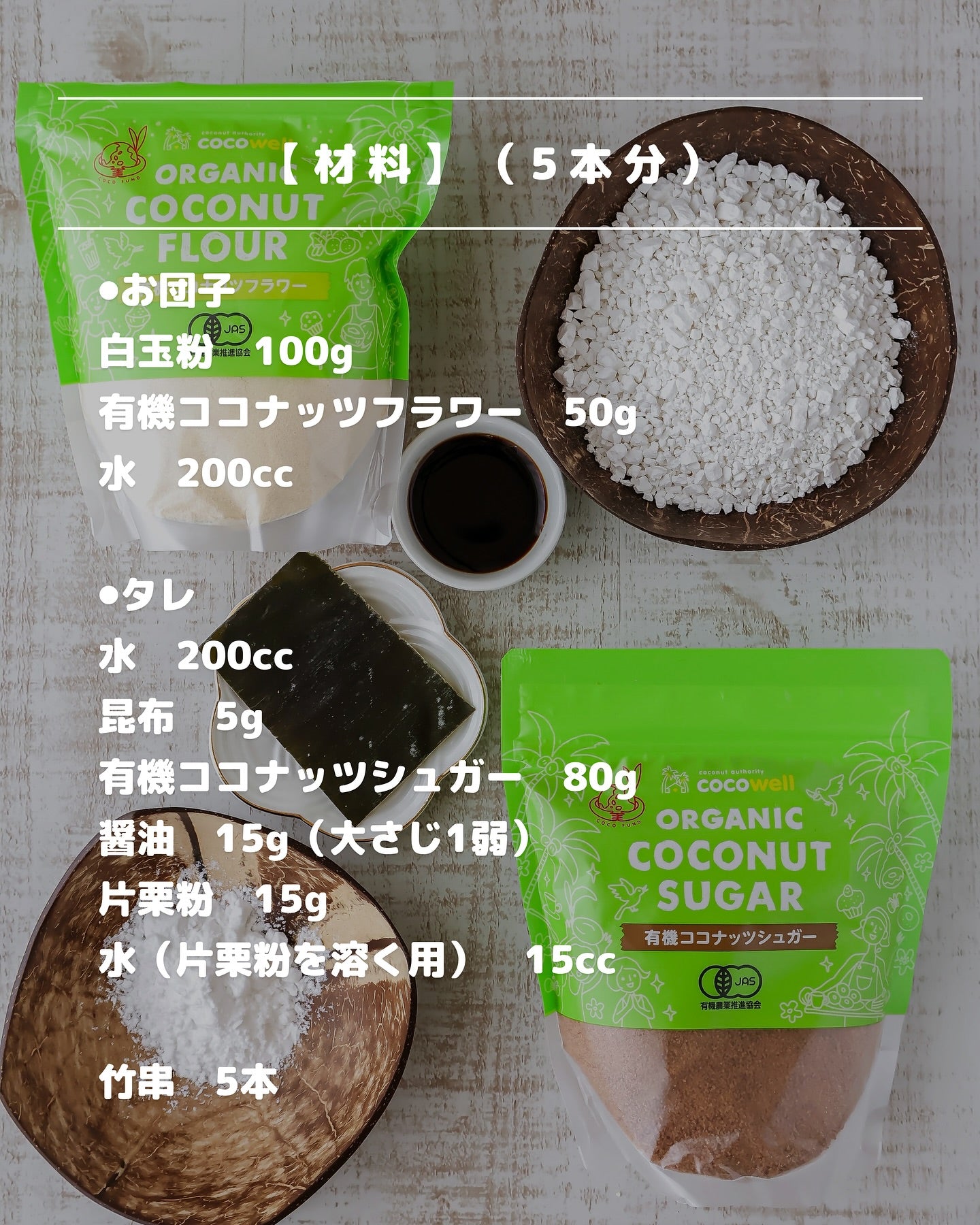 罪悪感ゼロスイーツ♪ココナッツフラワーで作るヘルシーみたらし