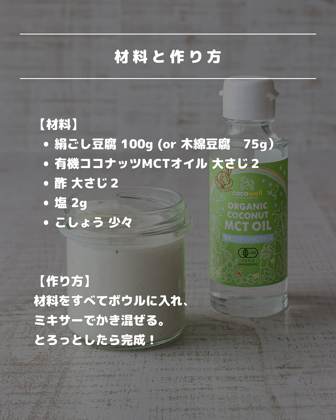 豆腐とココナッツMCTオイルで作る、軽くてヘルシーなマヨネーズレシピをご紹介します。