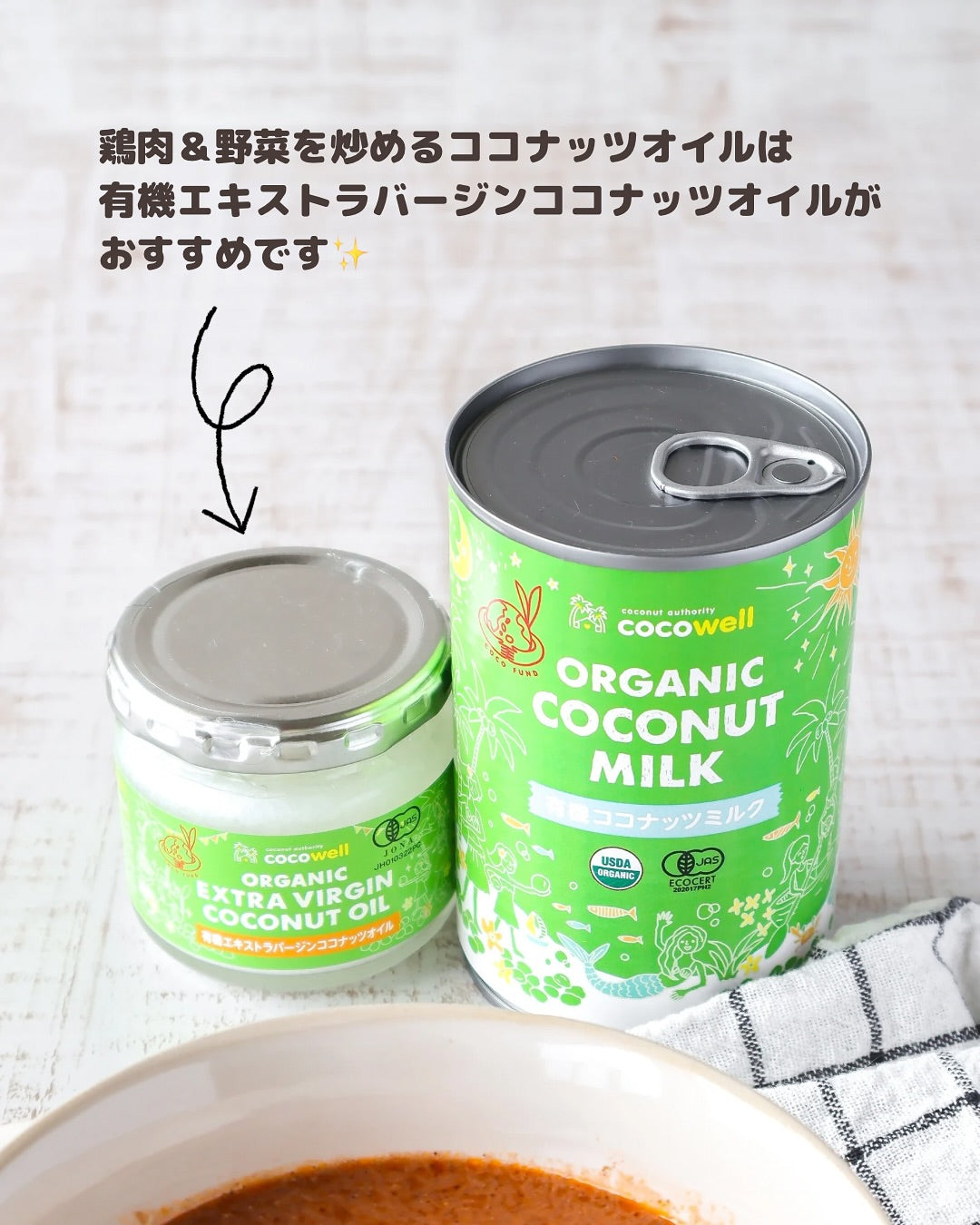 ・ココナッツミルクは 沸騰させすぎない と分離せず、滑らかに。