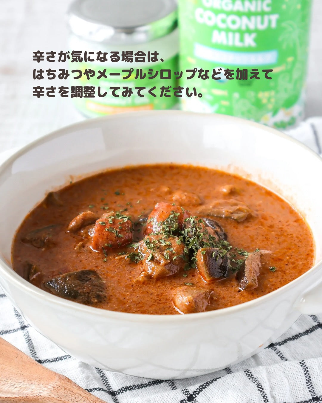 ・辛さ調整は、はちみつ・メープルシロップ・ココナッツシュガー でまろやかに。