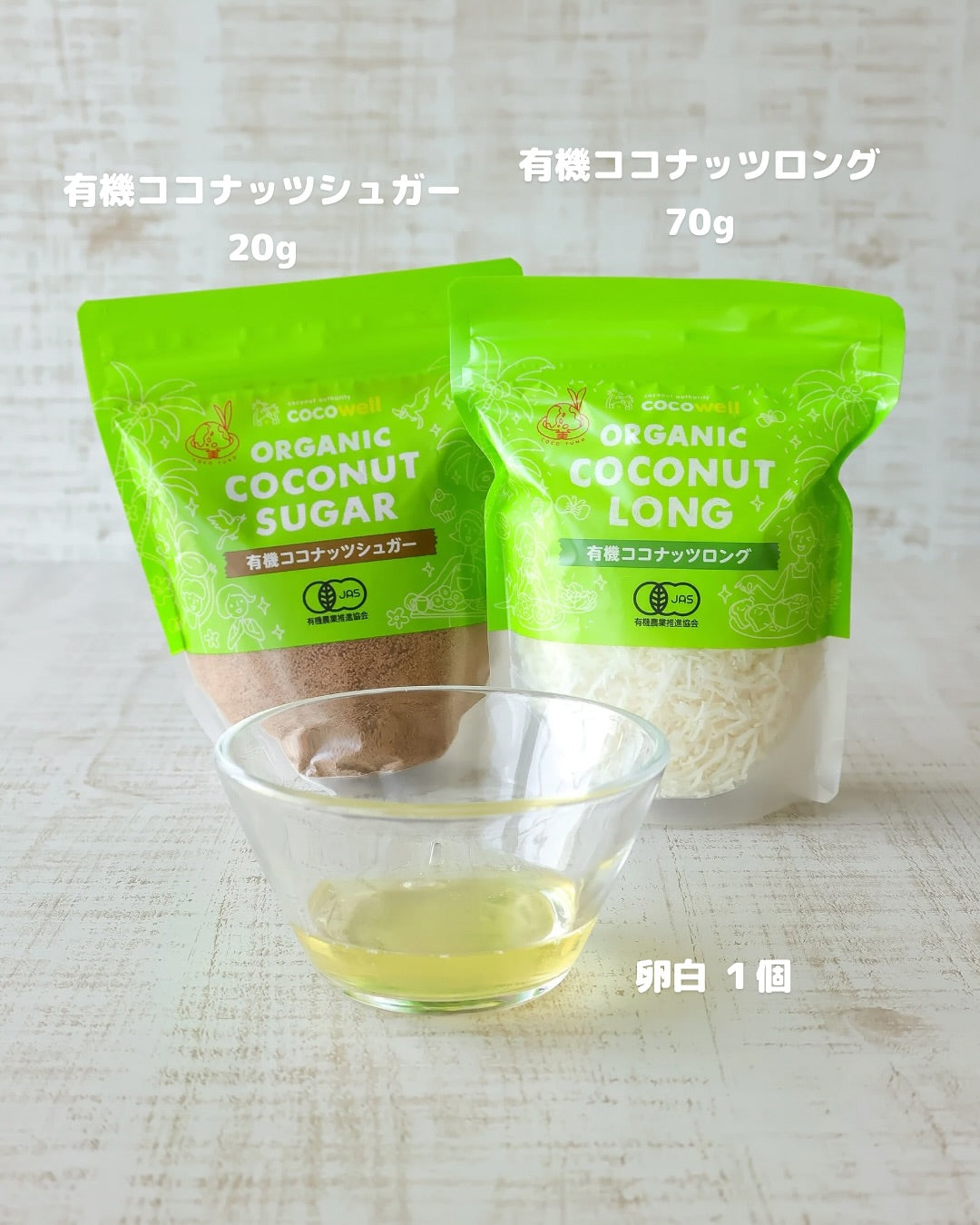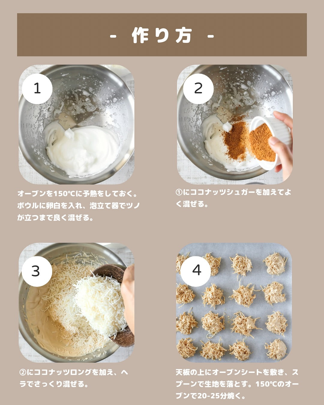 ココナッツシュガー、ココナッツロング、卵白のたった3つで作れる とっても簡単なココナッツスイーツです✨