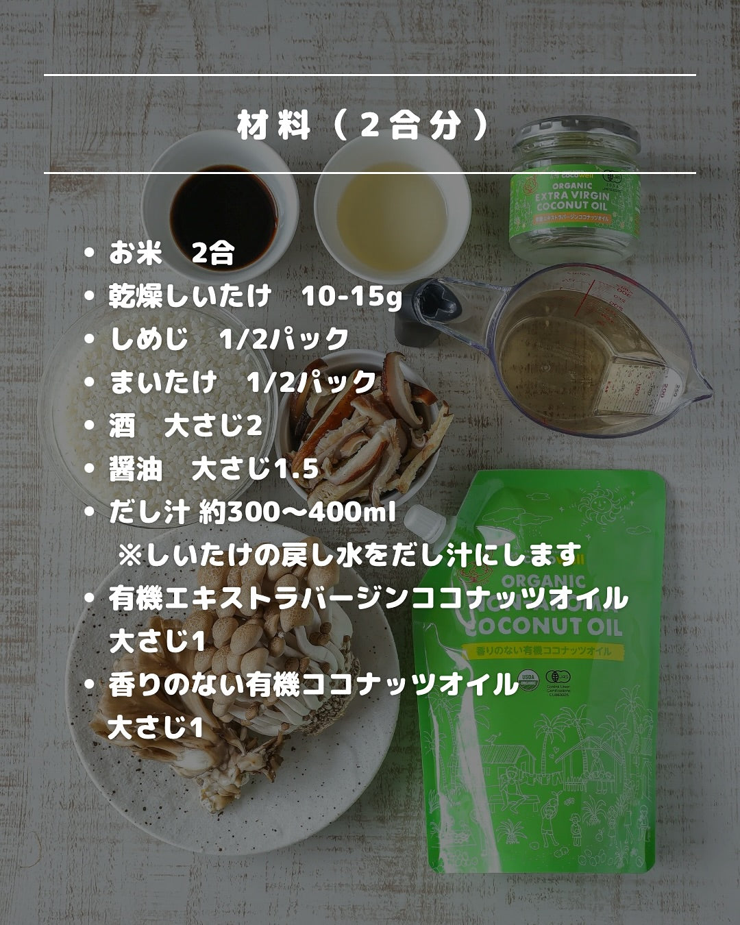 きのこの旨みとココナッツのやさしい香りをぜひ楽しんでみてくださいね🍚🥥