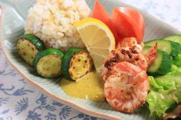 ガーリックシュリンプカレーソース ココナッツライス添え