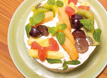 - スポンジを横半分にしクリームとフルーツを挟み全体を塗って飾る