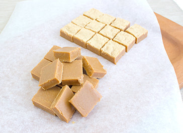 - 冷凍庫で2時間冷やし固めひと口大に切る